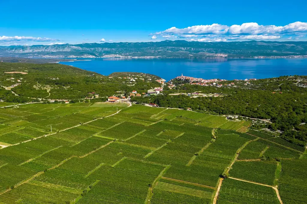 Vrbnik žlahtina is a part of life in Vrbnik, an unmissable companion in celebrations and bereavement. These golden drops are soaked with the sweat of Vrbnik’s farmers, they have been providing for Vrbnik’s families for centuries and are still the reason for the young families to stay in their hometown. Vrbnik žlahtina successfully grows in the Vrbnik field, which spreads over 211 hectares in the fertile valley to the northwest of Vrbnik. The deep and fertile ground, favourable climate and protected position have created good conditions for agricultural production. The grape is considered a native sort of Krk vineyards, and its name comes from the Slavic adjective žlahten which means noble. The golden-green grapes are transformed into vrbnik žlahtina — a smooth white wine with a light refreshing taste of discreet varietal aroma enriched with floral notes of wild rowan berries, immortelle and apples. In the last decades, the wine has become a staple of wine lists of prestigious restaurants, hotels and wine shops.