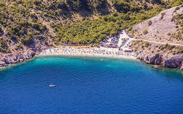 The Potovosce Beach is one of the most beautiful beaches on the island of Krk, and is one of the 100 most beautiful beaches in Croatia. The beach is 3 km away from Vrbnik, equipped with a sanitary block and parking spaces. If you want shade, you can rent sunshades and deckchairs. You can also find some refreshments at a small catering outlet.